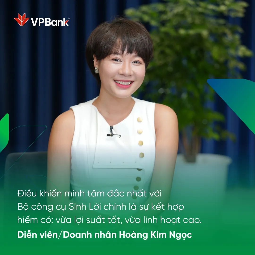 Hoàng Kim Ngọc không chỉ là một diễn viên, một KOL/Influencer “triệu view”, cô còn là một người mẹ và sở hữu doanh nghiệp của riêng mình. Không chỉ đa nhiệm trong công việc, Hoàng Kim Ngọc còn “đa nhiệm” cả trong cách nghĩ về tài chính. Cô tin rằng, nếu đã nỗ lực để tạo ra nhiều nguồn thu nhập, thì cũng cần có giải pháp song hành để quản lý và sinh lời hiệu quả. Với Super Sinh Lời của VPBank, cô ví von: “Mỗi sáng thức dậy, tài khoản lại tự động cộng thêm một phần thưởng nhỏ – đó chính là cách mình tăng lương cho bản thân”.