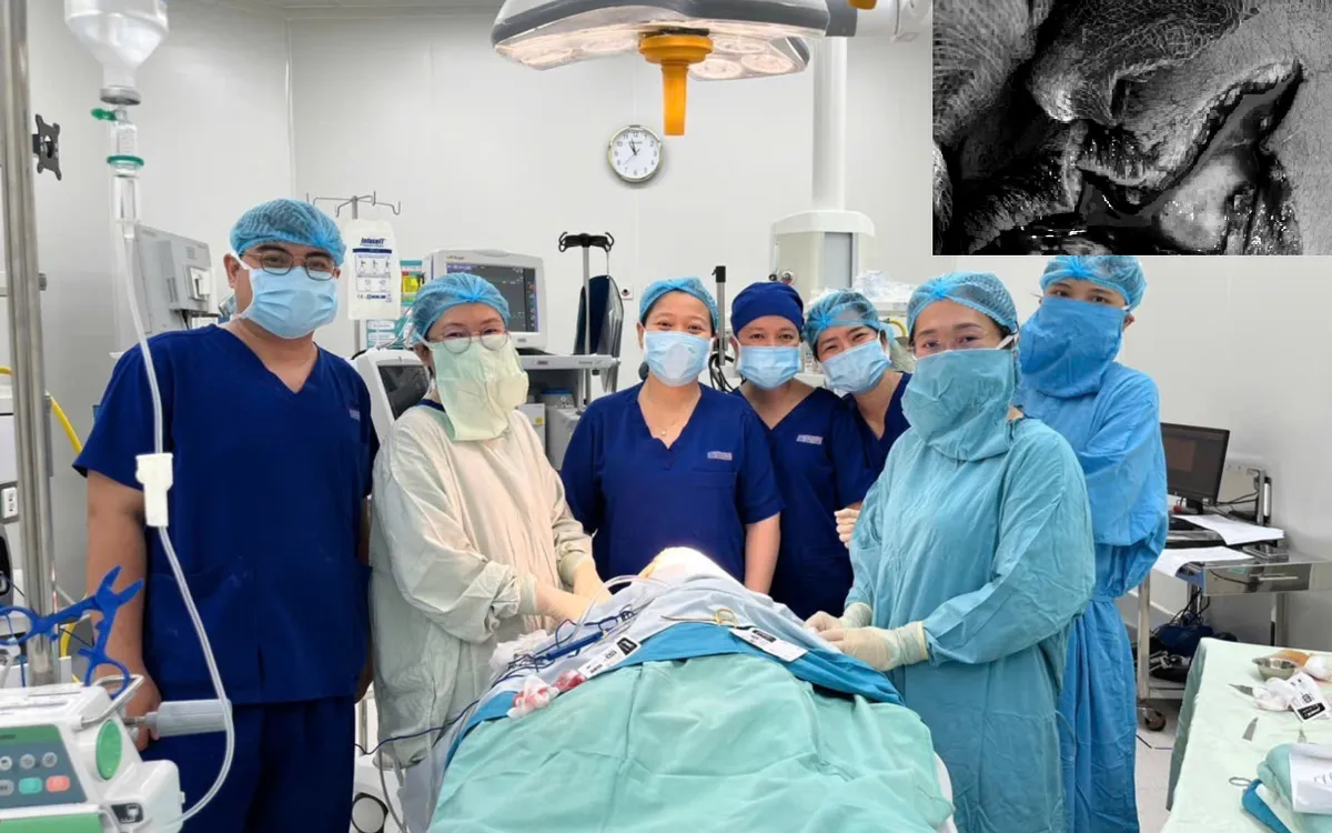 BS.CKII Hồ Vân Phụng – Quyền Trưởng khoa Răng Hàm Mặt đã huy động khẩn ekip Mắt – Răng Hàm Mặt – Tai Mũi Họng cùng phối hợp phẫu thuật. Trong hơn 2 giờ, các bác sĩ cắt lọc mô, tái tạo nhiều lớp từ trán, cung mày đến mi trên, khôi phục mí mắt và hệ thống lệ đạo, đồng thời khâu ẩn theo nếp da để hạn chế sẹo. Sau 2 tuần điều trị và theo dõi thị lực, bệnh nhi đã xuất viện.